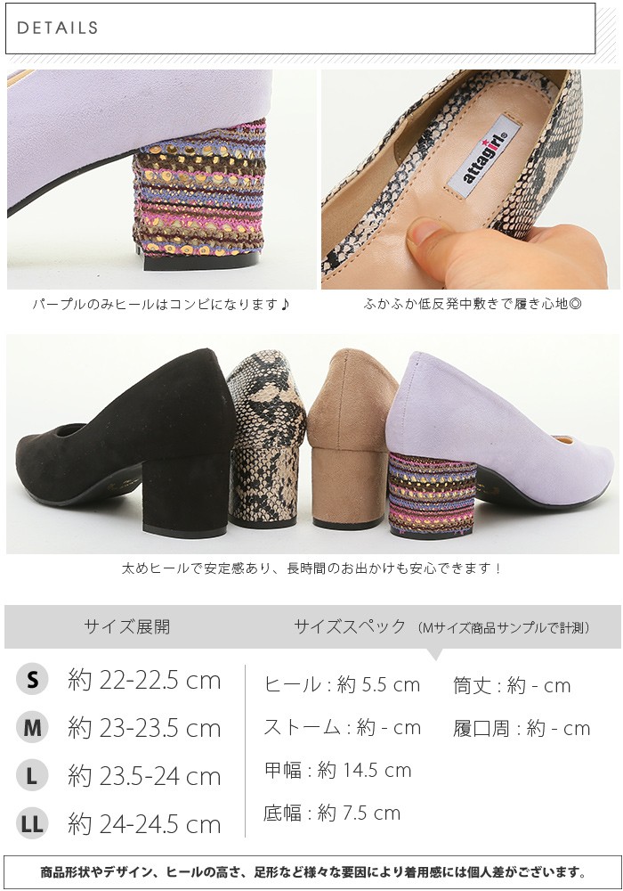 01. ブラックスエード 02. ベージュスエード 03. パイソン 04. パープルスエード |