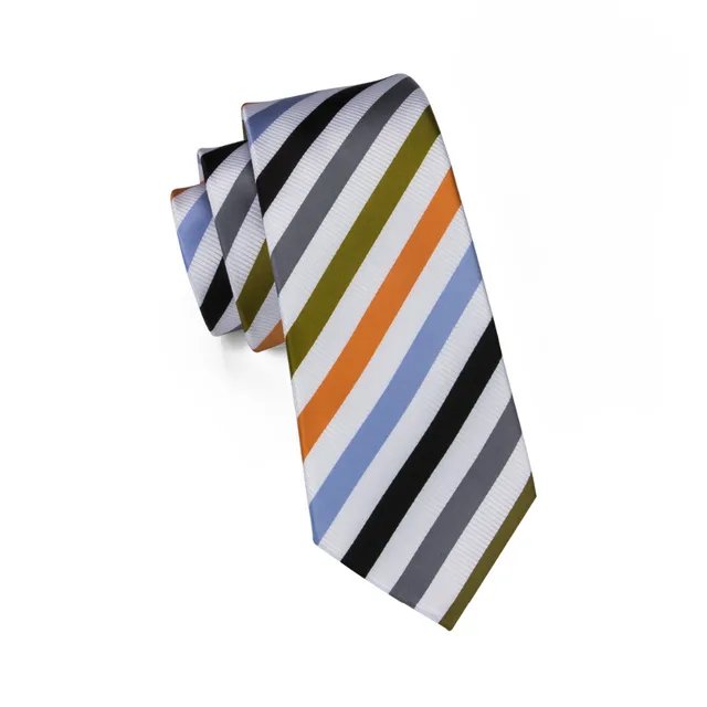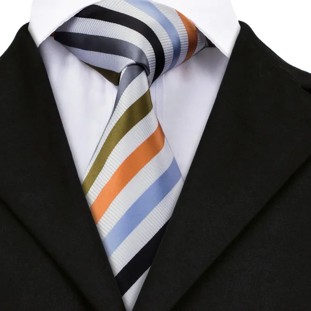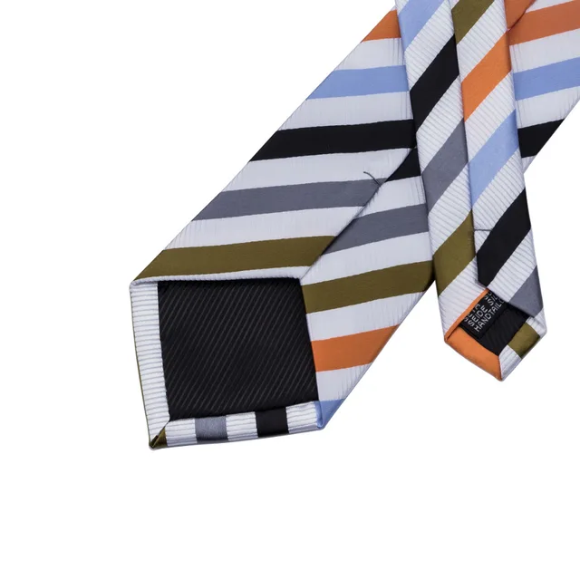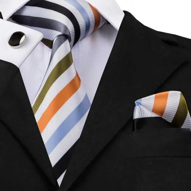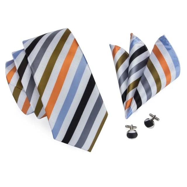 | [해외]2016 패션 화이트 오렌지 블랙 스트라이프 8.5 센치메터 폭 넥타이 손수건 커프스 세트 남성 실크 넥타이 정장 웨딩 파티 C-1090 |
