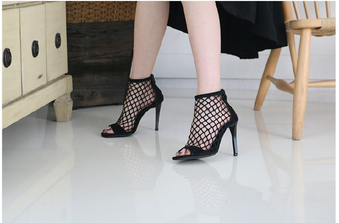 商品名:サンダル レディース ブーティサンダル メッシュ ピンヒール ハイヒール 2018 春 ファッション 靴 婦人靴