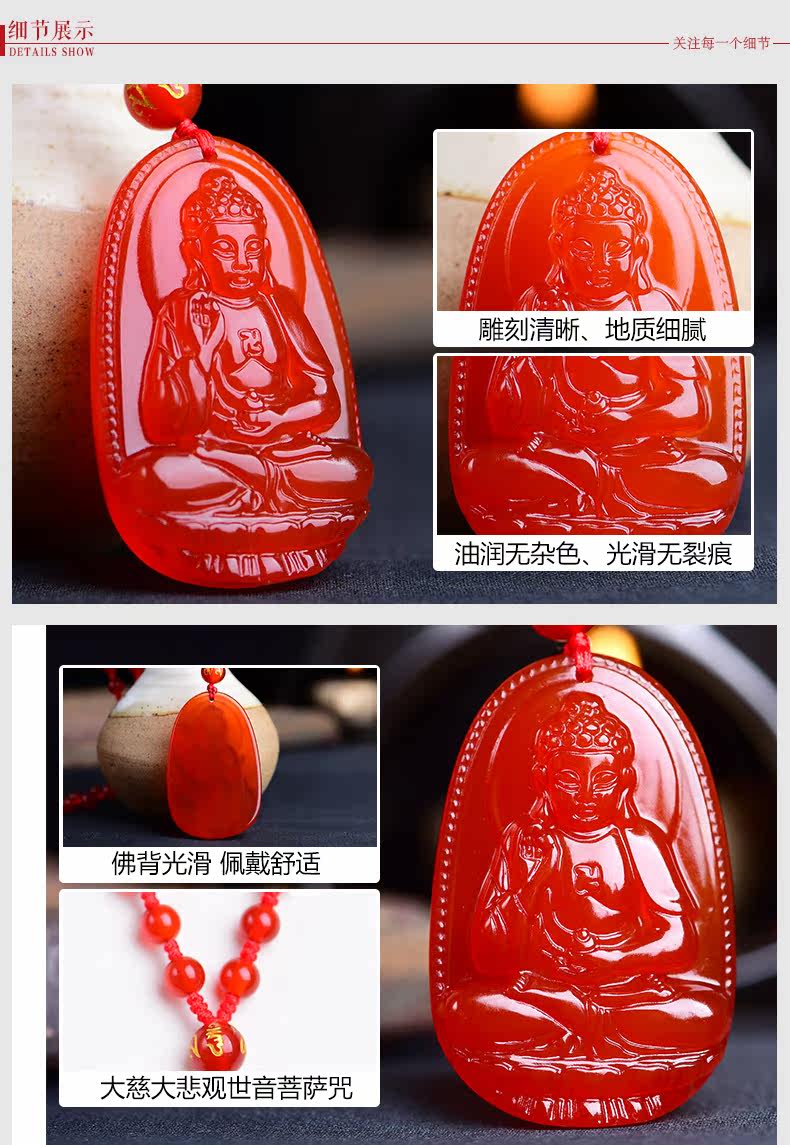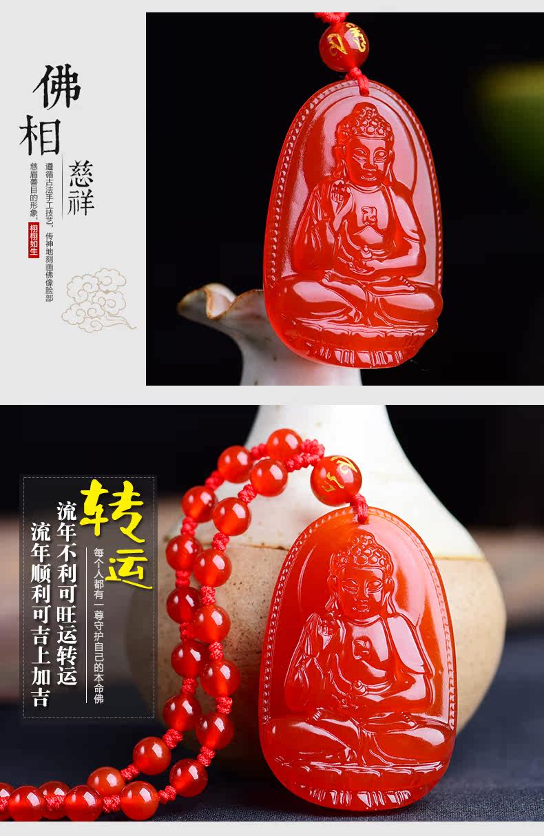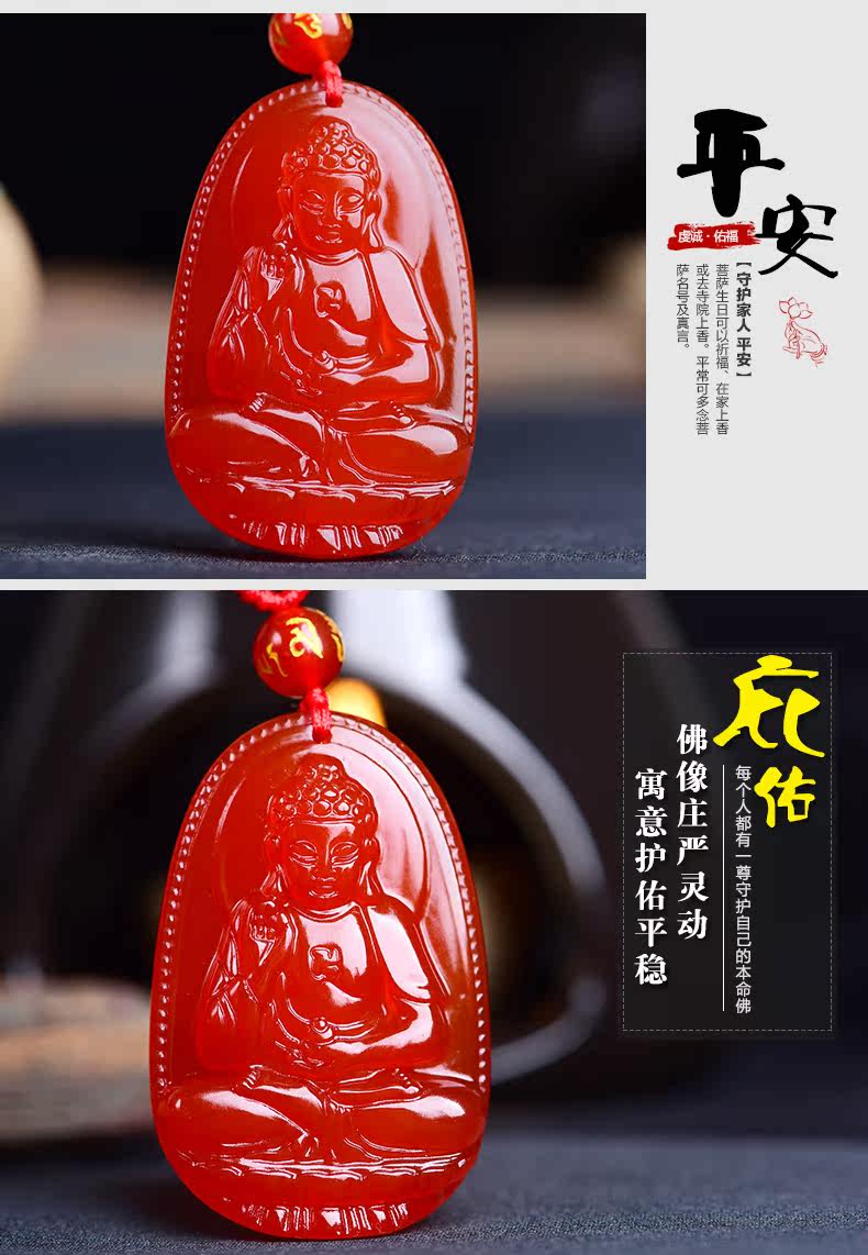 开光天然红玛瑙阿弥陀佛菩萨本命佛吊坠 生肖属狗猪男女款项链