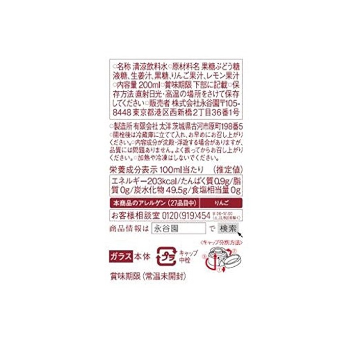 원본상품명: 永谷園 「冷え知らず」さんのむ生姜 糖 200ml