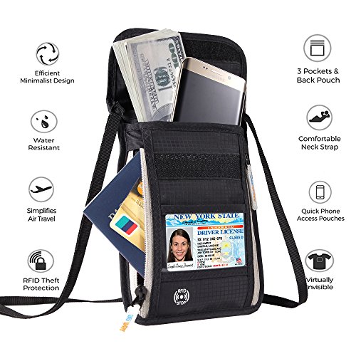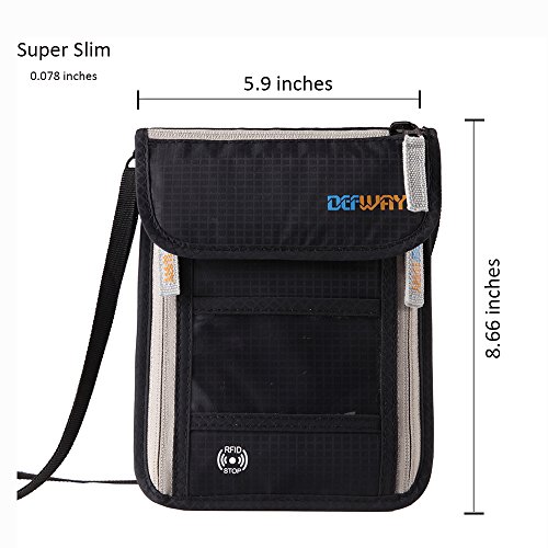 RFID Wallet Passport Holder Neck Stash Wallet Security Neck Pouch Travel Wallet RFID Wallet RFID Blocking Neck Wallet is made from high quality waterproof nylon, offer a better grip on the clutch.