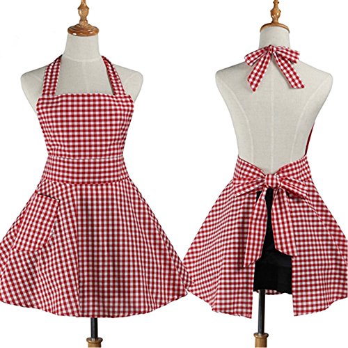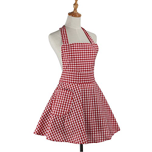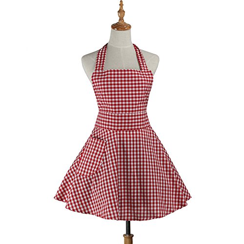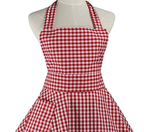Aprons For Women Girls Plus Size, Vintage Red Retro Cotton Cooking Aprons Dress Christmas(red)