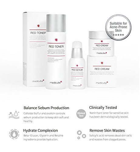 Medicube Red Line Full SET with Red Solution Kit - Toner, Serum, Cream, Foam Cleanser, and Red Solution Kit Included