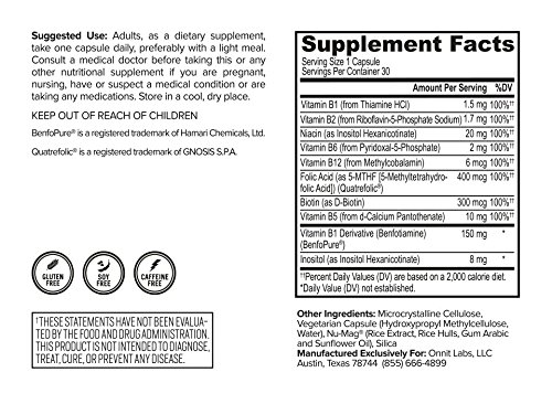 -. Binding : Health and Beauty -. Brand : ONNIT -. EAN : 0819444015316 -. Feature : Contains 100% of the RDA in all of the B Vitamin categories, including the methylated form of B12 methylcobalamin / Assists with energy production, boosts cognitive performance and aids neural communication / Research shows that B vitamins help reduce work-related stress and support a positive mood / B vitamins are involved in everything from the conversion of nutrients into neurotransmitters like serotonin to proper mitochondrial function -. IsAdultProduct : 0 -. Label : Onnit -. Manufacturer : Onnit -. ProductGroup : Health and Beauty -. ProductTypeName : HEALTH_PERSONAL_CARE -. Publisher : Onnit -. Studio : Onnit -. Title : Onnit Active B Complete - Methylated B Vitamins with Benfopure and 5-MTHF Folic Acid (30ct) -. UPC : 819444015316