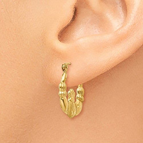 14k Yellow Gold Polished and Satin Claddagh Hoop Earrings - 1.3 Grams in 14k Yellow Gold - Product Attributes: - Diamond-cut - Hinged post - Hollow - Polished and satin - JewelryWeb Style: QTE43895Y - FREE gift-ready jewelry box