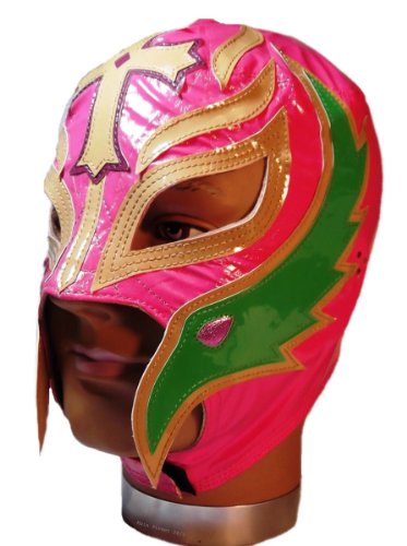 -. Brand : First_Look -. Color : Pink -. Department : unisex-Child -. Feature : WWE Official Rey Mysterio Youth Size Pink, Green, Gold Wrestling Mask Licensed / Sized to fit most kids ages 8 and above Made From Rey Mysterio's Mask Simulated Leather -. ProductGroup : Apparel -. ProductTypeName : CHILDRENS_COSTUME -. Size : osfm -. Title : WWE Official Rey Mysterio Youth Size Pink, Green, Gold Wrestling Mask Licensed