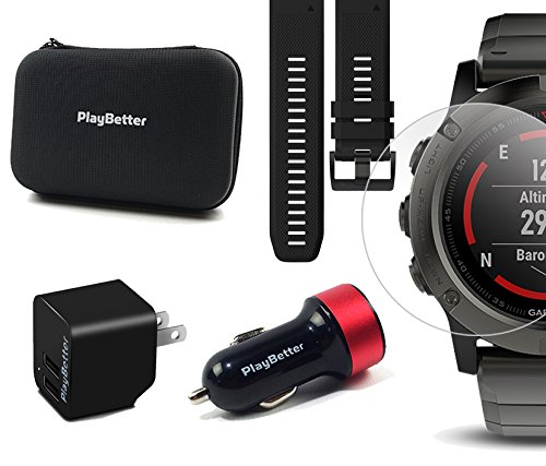 - MEMORABLE GIFT - Keep your fenix 5X looking brand new with the Extra QuickFit Band, our Ultra-Clear Glass Screen Protector and PlayBetter Hard Carrying Case and while the Wall & Car USB Charging Adapters will ensure that you're never without a charge!
