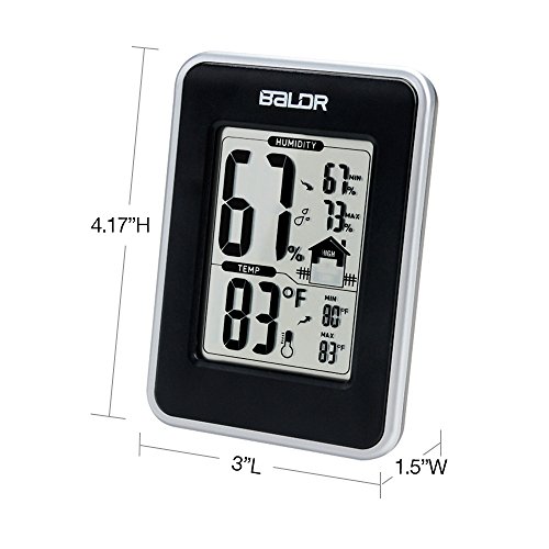 -. Feature : Detailed Metrics: Screen displays a temperature and humidity section, with current, minimum, and maximum readings. Screen also displays an icon showing weather comfort level status / Trend Alert: Temperature and humidity readings also have arrow trends, allowing you to know the forecast ahead of time / Household Essential: Tabletop design allows weather station to always be at hand whenever you need the forecast. / Easy to Read: Humidity and temperature are displayed is a larger format, allowing for across the room visibility. Temperature can be displayed in either Fahrenheit or Celsius / Portable: Unit is powered by 2 AAA batteries (sold separately). Measures 3"x1.5"x4.17"