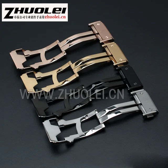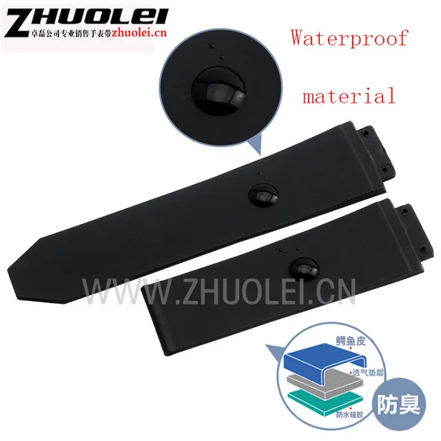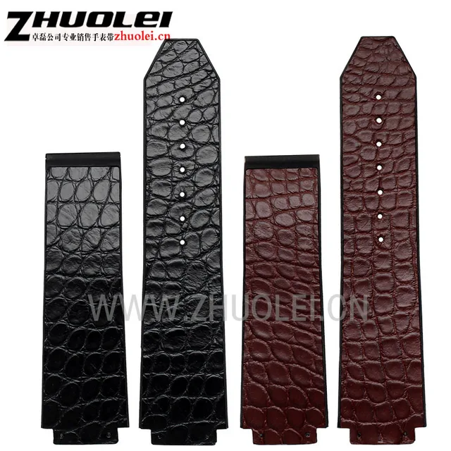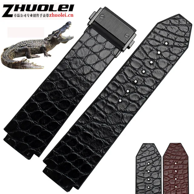 | [해외] 25*19 미리메터 악어 가죽 + 고무 럭셔리 손목 시계 밴드 블랙 | 브라운 손목 배포 버클 팔찌 |