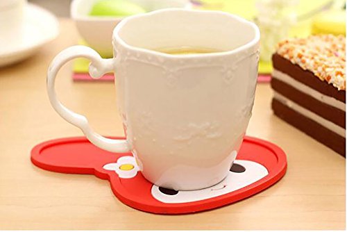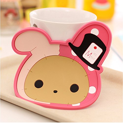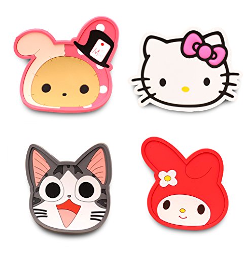 Finex - Set of 4 - Animal or Cartoon Characters silicone Coaster Set for Drink Cup Coasters Mat Mats - Hello Kitty My Melody Rabbit Bunny Cat
