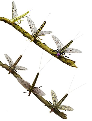 -. Feature : Pack of 6 Mayflies in 6 patterns (Green Drake Western & Eastern, Red Quill Hendrickson Female, Light Cahill, March Brown, & Gray Fox), with 2 size choices (12 & 14) / NEW type of fishing flies - lifelike & durable unlike traditionally tied patterns / Made of fully synthetic materials / Laser-etched lifelike body wing markings / Silica-based high-durability legs & mold-injected high-buoyancy foam body
