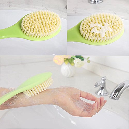 Do you want to have a body brush with long handle for your convenient using and brushing? Do you desire to have a multi-function brush which can remove your dead skin completely? Do you struggle to reach your entire back and wish that your current brush had a nice curve to it to make this easier? Upgrade your bath brush today! FEATURE: * Smoother skin - Use the dry skin brush and feel your skin getting softer and smoother. * Exfoliates - removes dead dry skin, improving appearance, clearing your clogged pores, and allowing your skin to "breathe." * The brush has a gentle curve to it so all of those hard to reach areas are much easier to get to without doing crazy contortions * Reduce Cellulite - softens hard fat deposits below the skin while distributing fat deposits more evenly to diminish the appearance of cellulite. * Stimulate Your Lymphatic System. High Quality Soft Brush ¡¤Our bath brushes were made with high quality supple and ductile material, which will take care of your body to reveal healthier and younger looking skin. ¡¤Make you feel more comfortable and enjoy your own bath time. Friendly Fashion ¡¤Nature material fashion feelings only belong to you! ¡¤The details determine the quality Smooth Brush Head and Non-slip brush handle ¡¤Relax your muscles, relieve your pressure, promote blood circulation and reduce fatigue. ¡¤Ergonomically design can prevent slippery which are easy to use. Instruction: 1. Soak the brush with warm water. 2. Pour some shower foam on the bristles. 3. Gently rub the bath brush to produce rich bubble. 4. Clean your body with the brush. 5. Your skin will be clean and refreshed. 0
