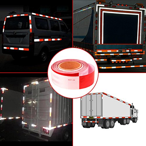 Acrux7 Reflective Tape For Trailers, DOT-C2 Retroreflective Sheeting Pattern: Alternating White and Red Color Segments, 50mm x 73ft, Waterproof Adhesive, For Truck, Garage Door, Parking Lot, Driveway
