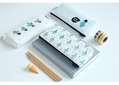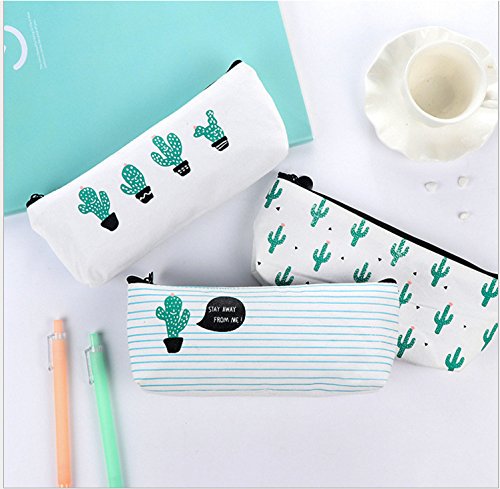 Clear and lovely cactus canvas Pencil Pen Case Cosmetic Makeup Bag,Set of 3