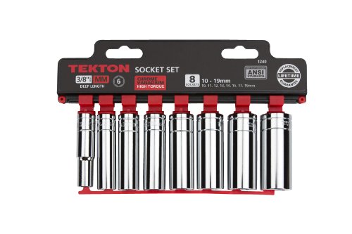 TEKTON 3/8-Inch Drive Deep Socket Set, Metric, Cr-V, 10 mm - 19 mm, 8-Sockets | 1240