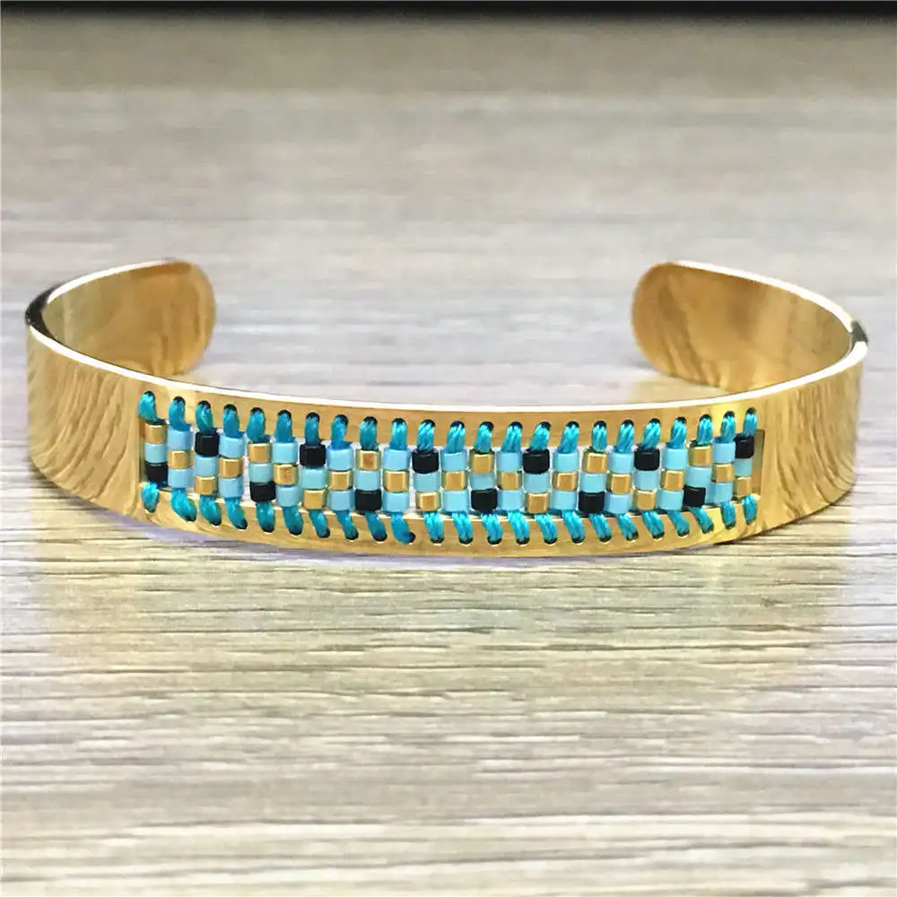 Chain Type:Seed Beads Handmade Stainless Steel Cuff Bangles