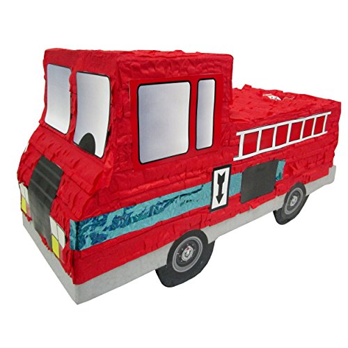 -. Feature : Makes a fun party game, unique table centerpiece / Piñata measures 19" long, 9" high and 8" wide and holds 2 lbs. Of fillers (sold separately) / Features a fire truck decorated with print cutouts, fringed-cut tissue paper and holographic paper / Perfect for a boy's birthday on the fire fighters theme / Includes strong cable tie at the top for hanging pinata and opening for adding fillers