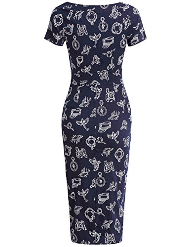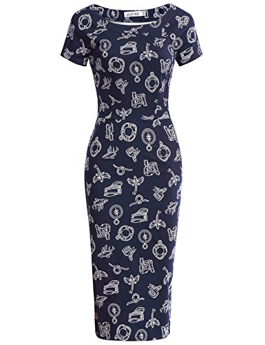 Title : JUESE Women's Vintage Slim Fit Short Sleeve Floral Print BodyCon Pencil Dress (S, Blue Dragonfly)