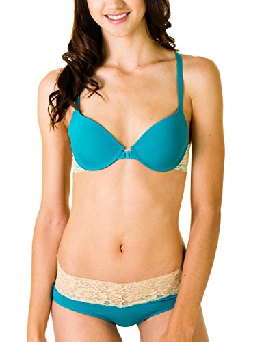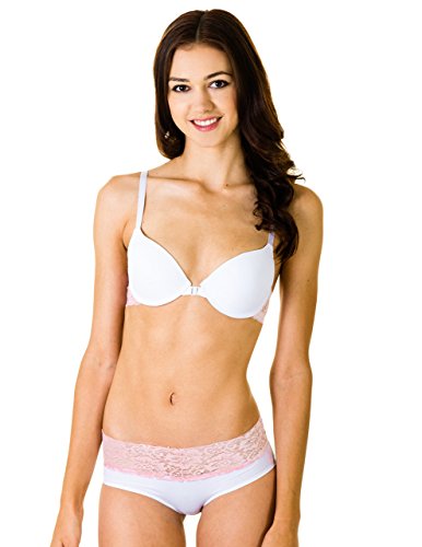 This sexy matching laser cut bra and matching panty set has it all. Laser cut for a clean and sharp look, front closure for easy on and off and adjustable straps. The rear band is full lace adding a touch of sexiness, and the push-up cups give you that extra lift throughout the day. Sizing Specs: Junior's Sizing: Model Wears 34B, Medium; Bust: 33'', Under Bust: 29'', Waist :26'', High Hip: 32", Hip: 36.5'', Height: 5'11''Feature