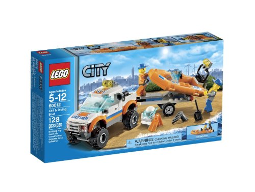 Save the day with the LEGO City Coast Guard 4x4 and Diving Boat. Launch the boat, put on the diving gear and splash into the water. Use the megaphone to direct the diver as he makes the rescue. Then, radio back to shore with the walkie-talkie. Includes 2 minifigures: a driver and a rescue diver.Feature