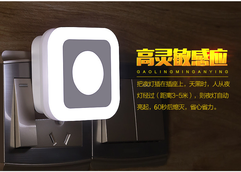 人体感应灯楼道插座插电led光控小夜灯遥控婴儿喂奶灯迷你床头灯