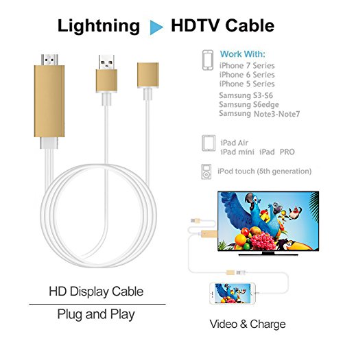 Plug and Play: 2nd Generation plug and play mhl to HDMI cable that only needs to connect the iPhone/iPad/Samsung Smartphone with the display/projector/HDTV. Stronger and stable than VGA analog signal. And it will charge your device while streaming.