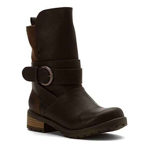 Studio : Roxy Publisher : Roxy Binding : Shoes Product Description Waterproof boot with synthetic upper and interior bootie, multi strap shaft detail with buckle closure, faux fur lined shaft and footbed, roxy metal logo pin, and flexible tpr unit bottom. 0