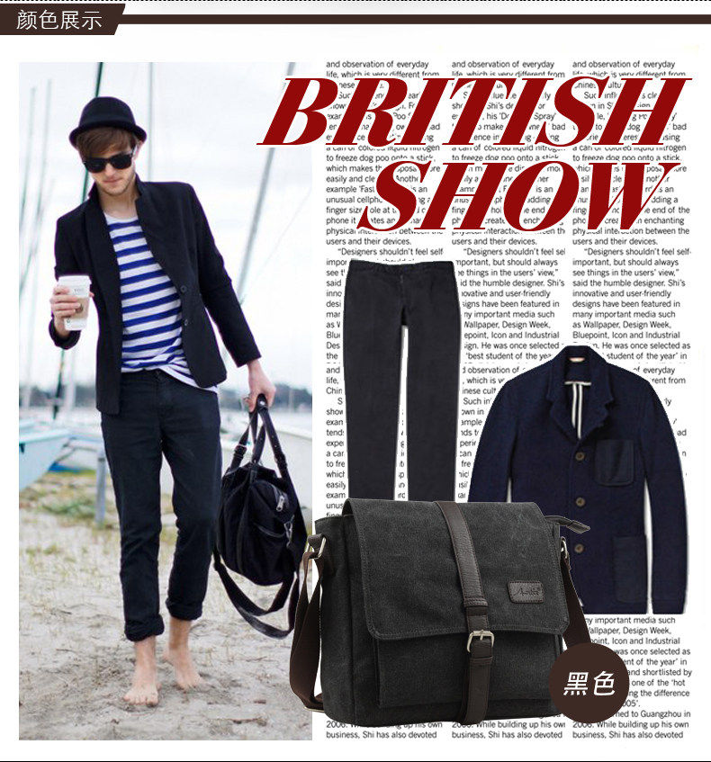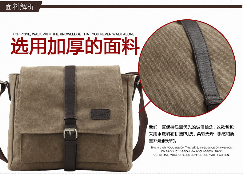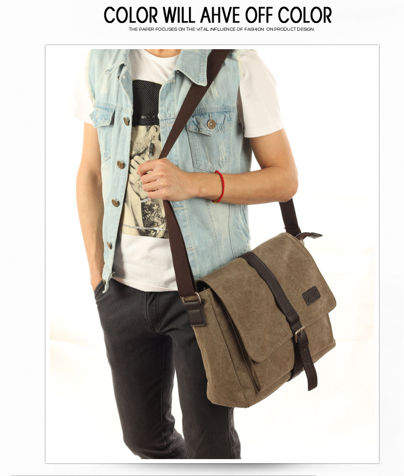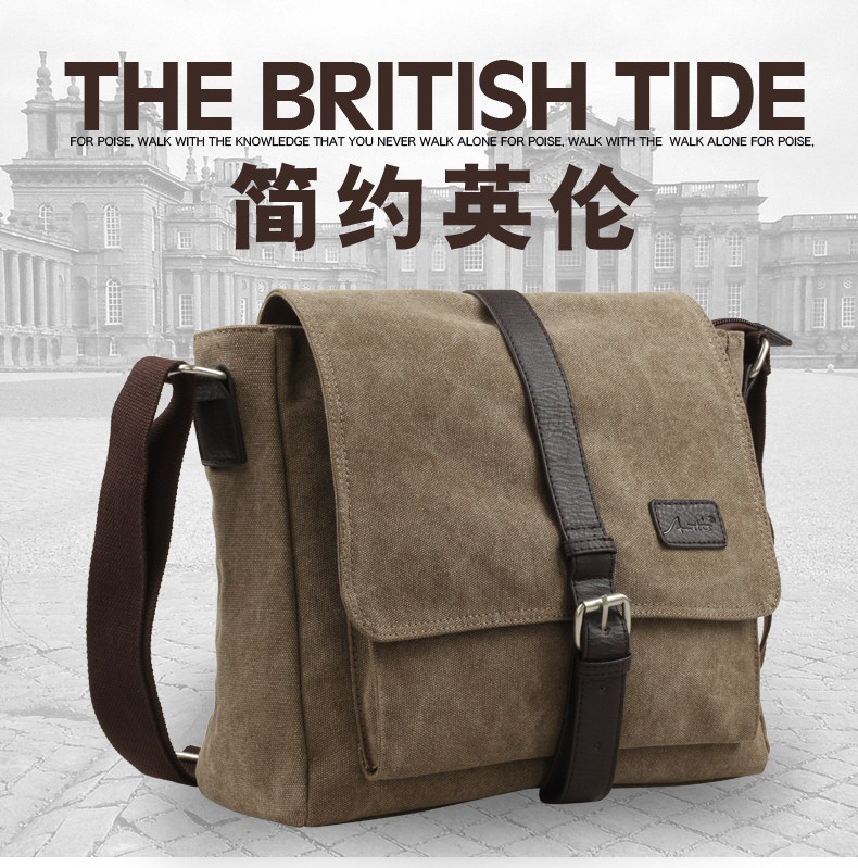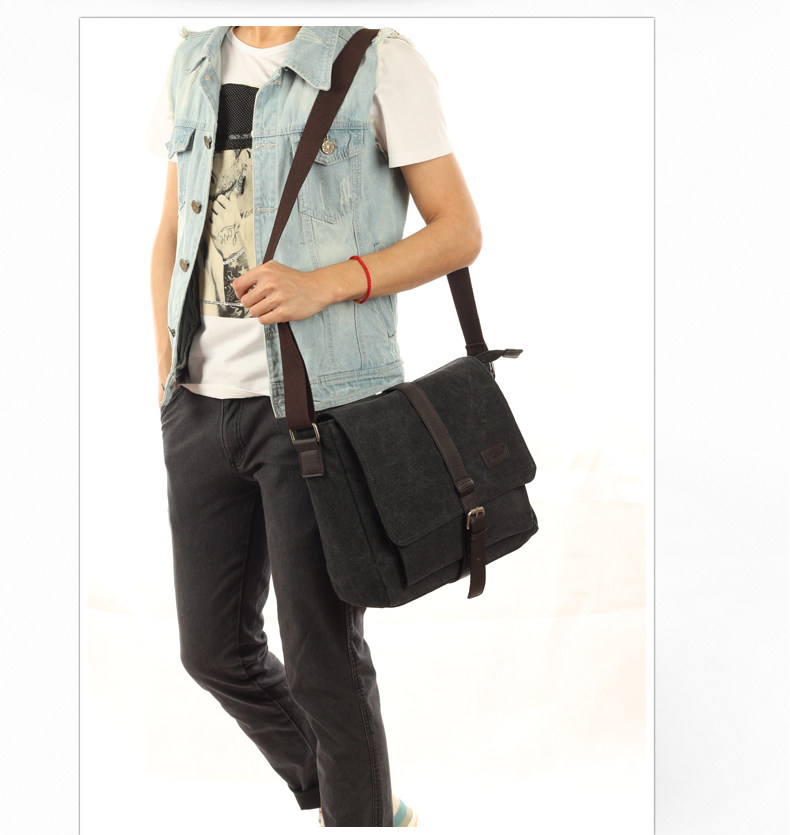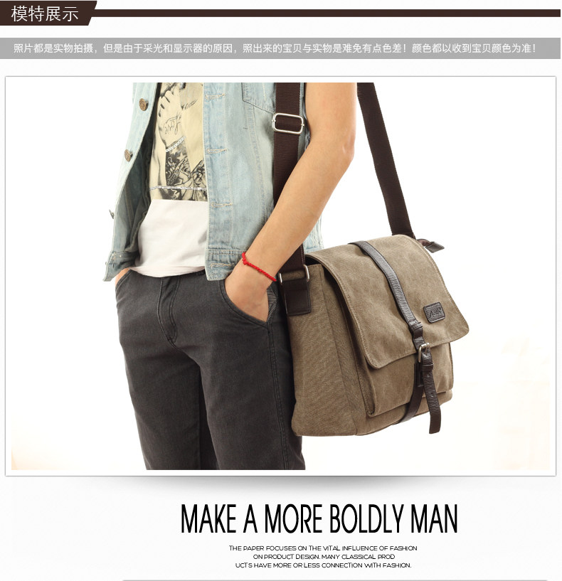 墨一复古邮差帆布包单肩包 韩版男士学生户外时尚休闲斜挎包男包