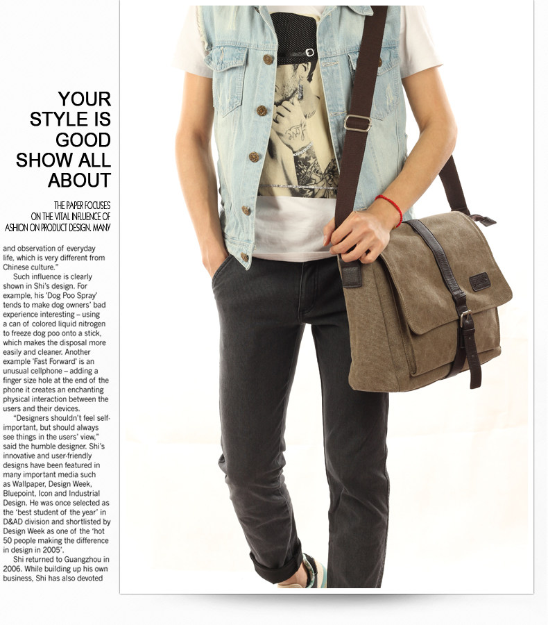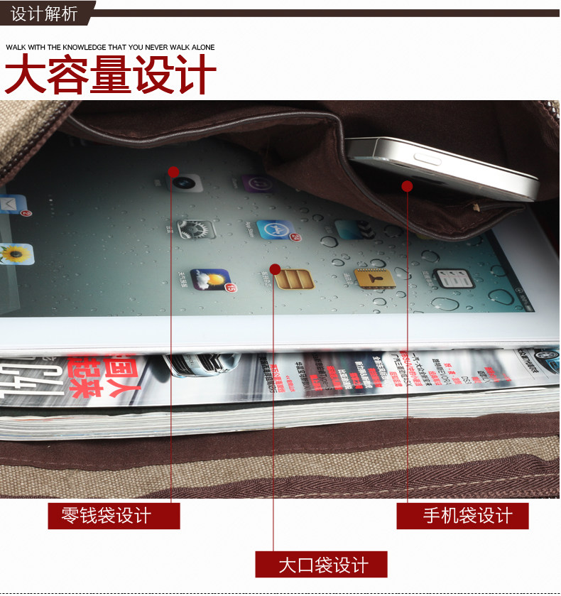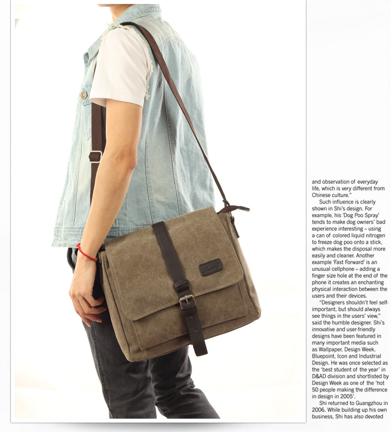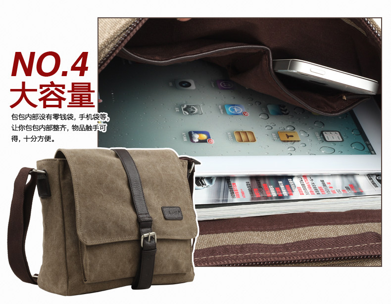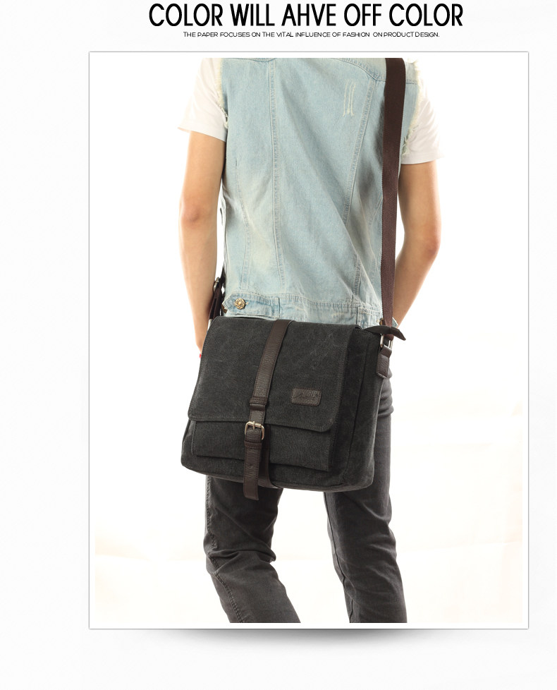 墨一复古邮差帆布包单肩包 韩版男士学生户外时尚休闲斜挎包男包