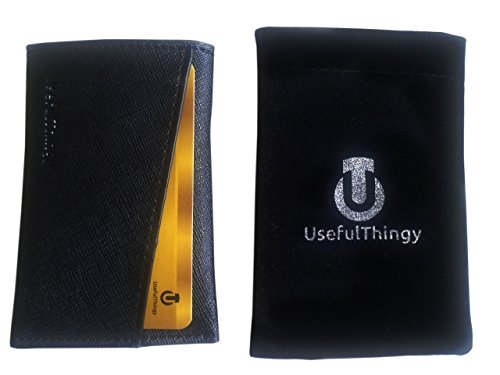 Ultra Slim Leather Wallet by UsefulThingy What is RFID technology and why you should be protected? Many credit cards, ID cards, driver licenses or passports are made with Radio Frequency Identification (RFID) chips which offer convenient contactless scanning and information sharing. Unless properly shielded, your card-based data is readily available when any active reader is in range! With digital readers or even smarthphones apps, thieves can easily skim the name, account number, and expiration date from an unprotected credit card even while it's still "safely" tucked in your wallet or purse - all the information needed to create a counterfeit card and make unauthorized purchase / access! That is why you should use RFID blocking wallet. With your new slim wallet by UsefulThingy you will get all these benefits: ?SAFETY AND SECURITY - feel secure knowing your personal information cannot be compromised by electronic pickpocketing thieves ?PRIVACY - effective way to protect yourself against identity theft and to avoid the long and costly process of getting your identity back ?QUALITY MATERIAL - made of quality genuine leather, high level of craftsmanship, durable and built to last ?ELEGANT CLASSY DESIGN -Color options: black, soft smooth surface. ?HIGH FUNCTIONALITY - bifold wallet with 2 card slots - can fit total 6 cards (RFID protected, for credit cards, ID cards, business card, etc.), 1 compartment for your bills ?NICE PACAGING - wallet comes in an attractive cloth case ?MINI SIZE - 4 x 2.7 x 0.3 inches, slim, small compact size. Fits perfectly in front or back pocket, great replacement of older bulky wallet. You will get our standard hassle free 30 days 100% Money back guarantee. Order Now and think about getting one for your very best friend. This offer is time limited. 0 |
