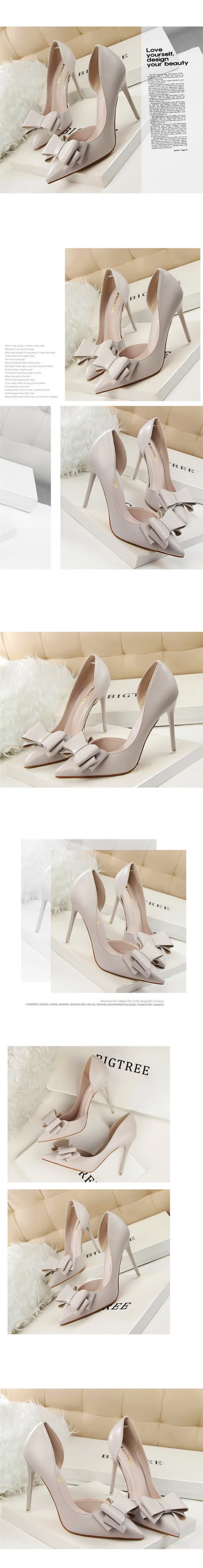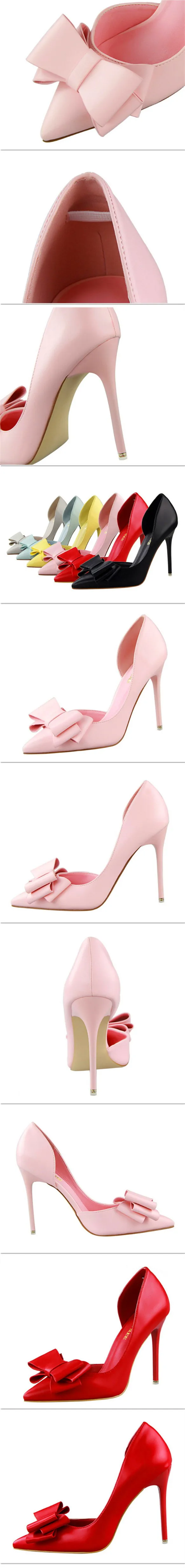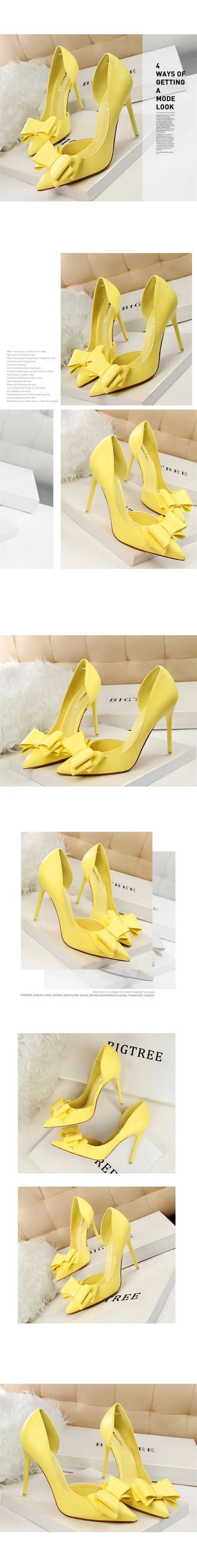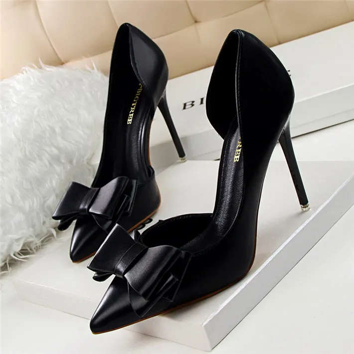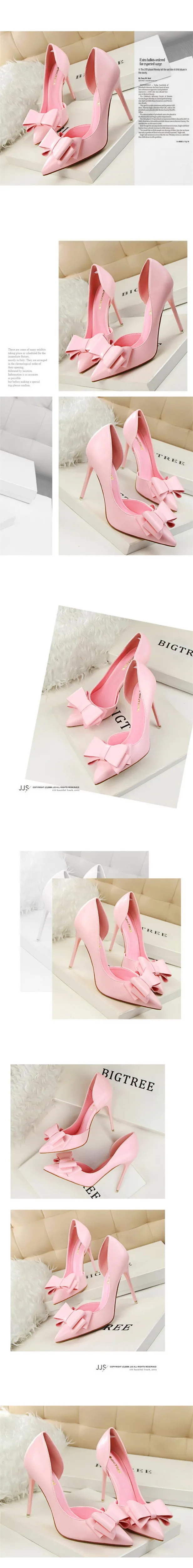Item:Sweet Bowtie Pointed Toe Women Pumps Sexy Side Cut-Outs Shallow Shoes