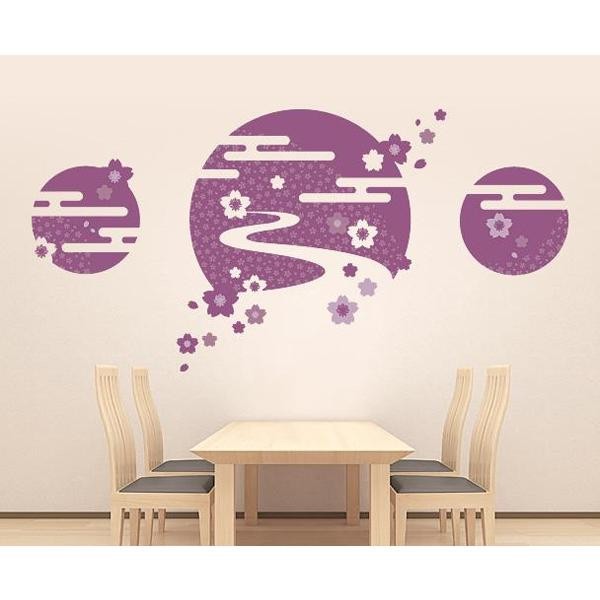 桜や小川を和風の風流な雰囲気にデザインしたウォールステッカーは和室に最適です。