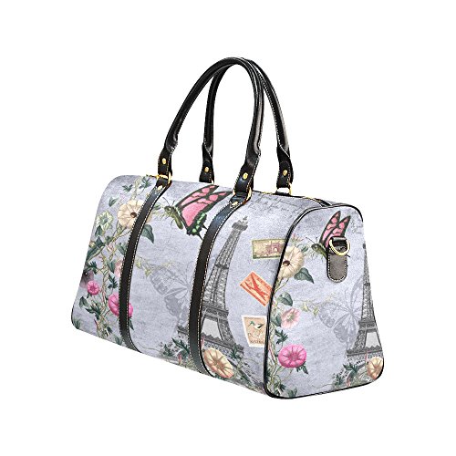 -. Title : Vintage Eiffel Tower Butterfly Travel Duffel Bag Waterproof Weekend Bag with Strap
