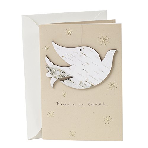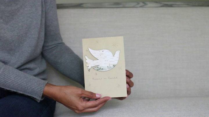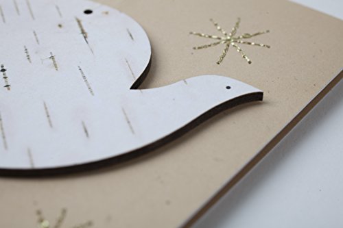 Send a special holiday greeting to beloved friends and family with this elegant card featuring a removable dove ornament with a birch bark pattern, mounted on a creamy brown background accented with stars sewn in with golden thread.