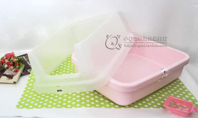 Use antibacterial plastic material, can effectively inhibit bacterial growth. Potty mesh size of about 0.2mm x 0.2mm, which can effectively filter debris and sand then crumbs, you can use general litter, sawdust sand, crystal sand pellets or flake crystal sand.
