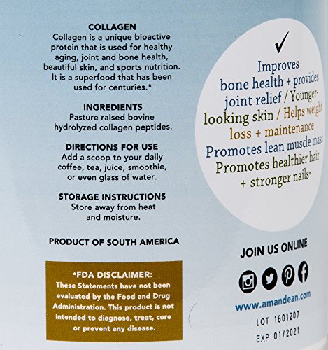 -. Title : Amandean Premium Pasture-Raised Collagen Peptides | Unflavored, Odorless, Cold Water Soluble | Hydrolyzed Gelatin Protein Powder | Anti-Aging Superfood Promotes Healthy Joints, Gut, Metabolism