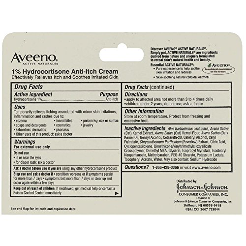 Aveeno 1% Hydrocortisone Anti-Itch Cream, Maximum Strength, 1-Ounce Tubes (Pack of 4)