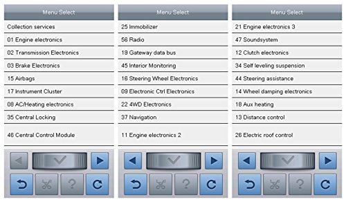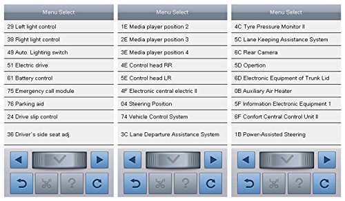 -. Feature : Control Modules:Engine electronics,Transmission Electronics,Brake Electronics,Tyre Pressure Monitoring,Airbags,Central Control Module,ect / One vehicle make with full system and full function,Hand held with robust functions, at OE level / Quick access to Audi control systems such as engine, transmission, ABS, SRS,additional heater, etc / Faster processing speed with exclusive platform,Economic price affordable for audi car owners / One key update Tool made it easy to upgrade software online