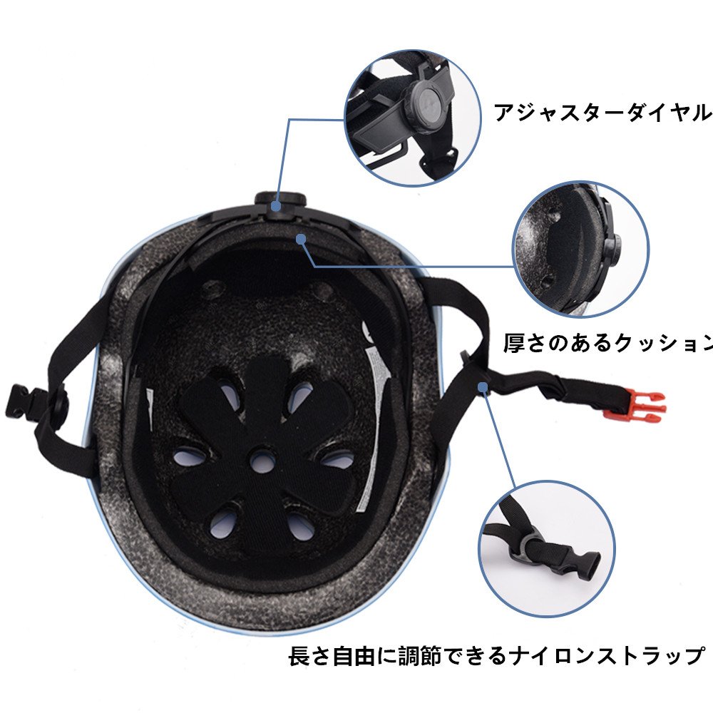 安全性が良い:ヘルメット材質アッパーシェル/ABS アンダーシェル/EPS プロテクター材質:PVC/メッシュ布/スポンジ 高品質の製品なので、自転車、バイク、キックボード、スケーターなどに乗っているお子様の安全をより一層確保できます。