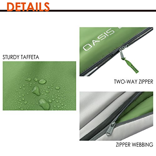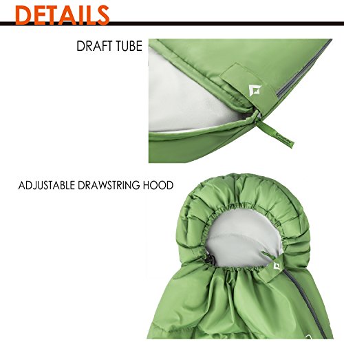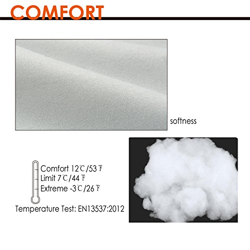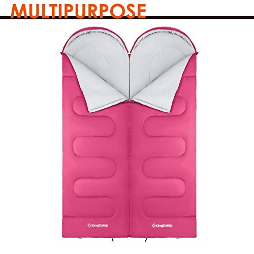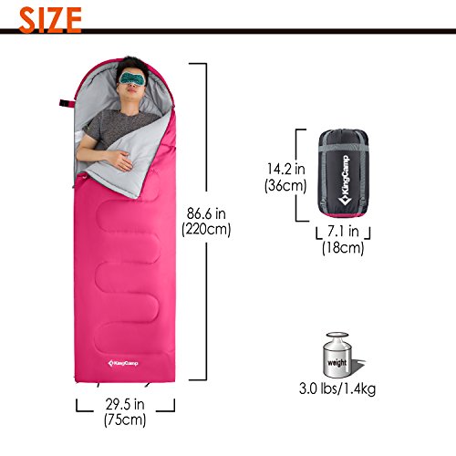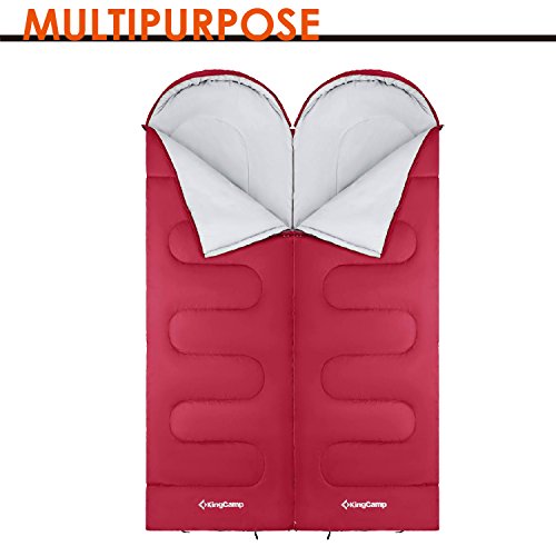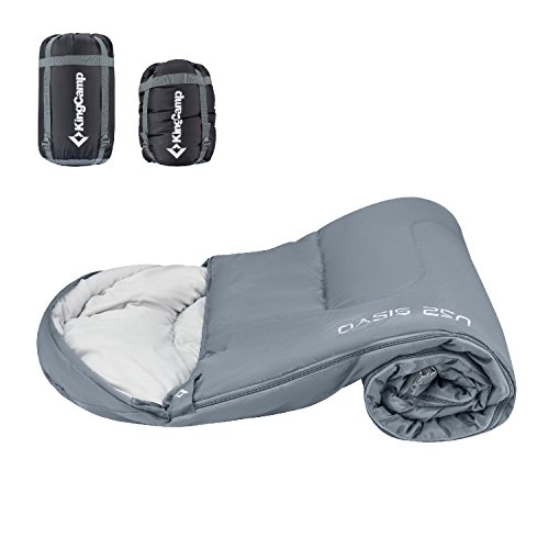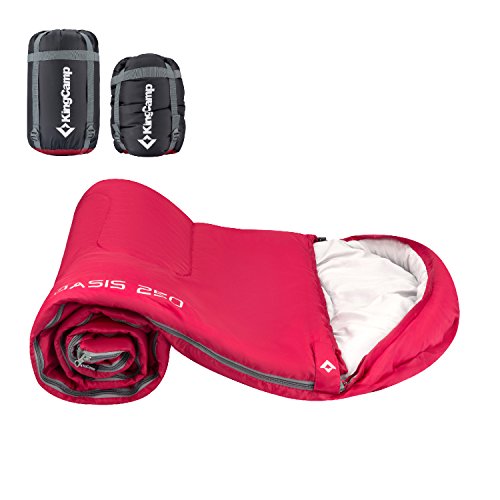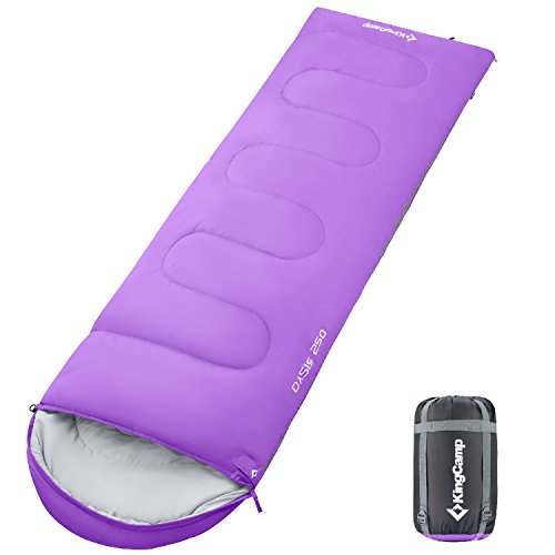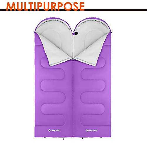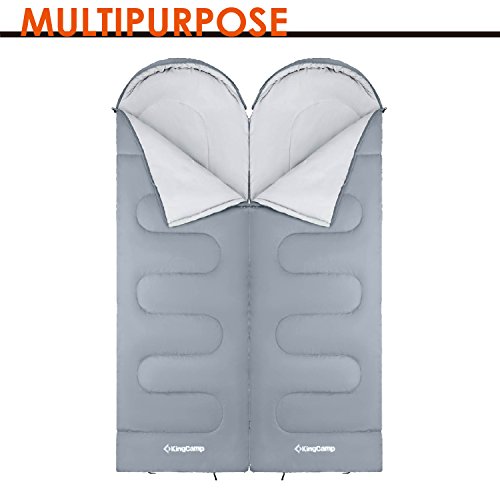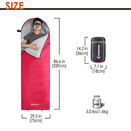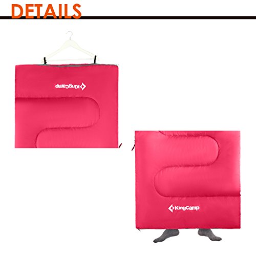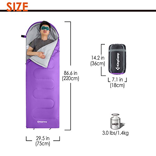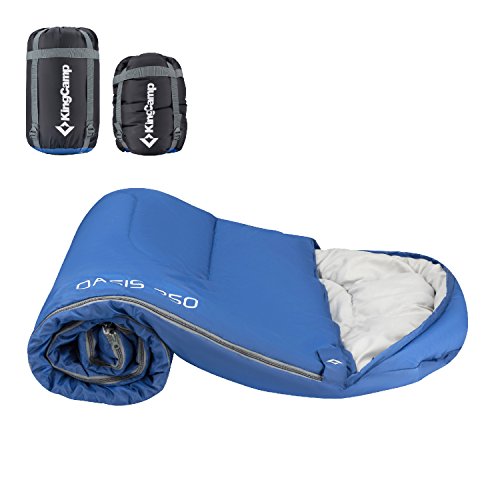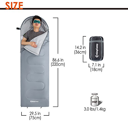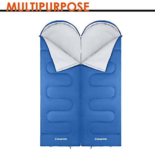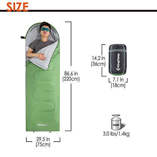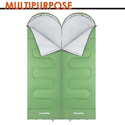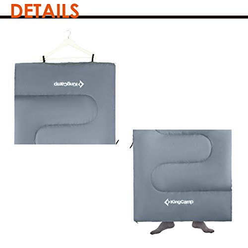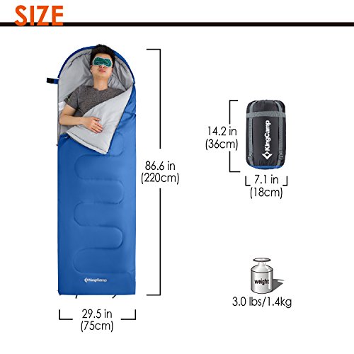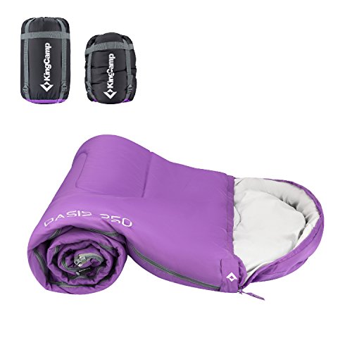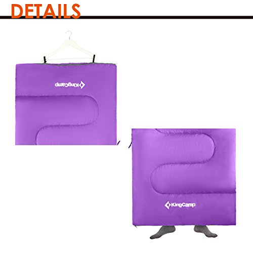 Specification: Set Size: 74.8" x 11.8" x 29.5"/31.5" Packaged Size: 15.0" x 10.6" x 10.6" Fabric Type: (outer) 190T polyester W/P Cire; (lining) 100% polyester; (fill) Polyester Fiber Temperature Ratings: 44F/(250g/m2), 33.8F/(300g/m2) Shape Style: Envelope One left One right sleeping bag can be zipped together Carry Bag: 210D Oxford Product Description: KingCamp Sleeping Bag is great for 4 season. The bag is constructed of corespun polyester and a double filled fixed comfort loft filling, comfortable and warm. The functional S-shaped quilting design helps to secure the filling, making the sleeping bag more durable. Envelop design for more leg space. Zippers with wind baffle, drawstring hood with collar and a inner pocket make this sleeping bag extremely convenient and warm. A zip cover (a piece of fabric fastened with velcro) covers the zip when the bag is fully zipped up helping to prevent the zip coming undone when asleep. With full zip open, the sleeping bag can be used as a quilt. Two way zipper can also make your feet often come out through the wind.Easy to compress and roll, extremely lightweight. Compression straps help reduce the size of the packed bag, this sleeping bag is perfect for every avid outdoorsman! PACKAGE INCLUDES: 1 x Sleeping Bag 1 x Carry Bag About KingCamp: KingCamp offers a wide range of products covering outdoor activities of camping, hiking, travel, and leisure. Each product design is based on the specific requirements of our clients and the comments from our testers who use the products in extreme outdoor conditions. KingCamp is a leader and professional brand in the manufacturing and distribution of outdoor gear in more than 30 countries worldwide, providing excellent products aimed at satisfying the needs of our clients and their relationship with nature.