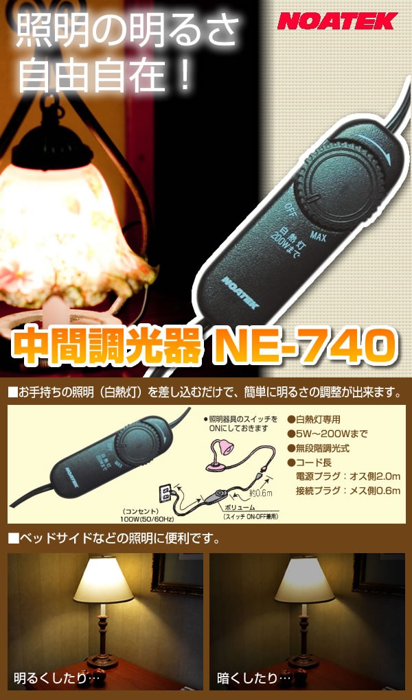 | お手持ちの照明を差し込むだけで、簡単に明るさの調節ができます。ベッドサイドの照明や間接照明に取り入れて癒しの空間作りをお手伝い。白熱灯専用、無断階調光式。 |