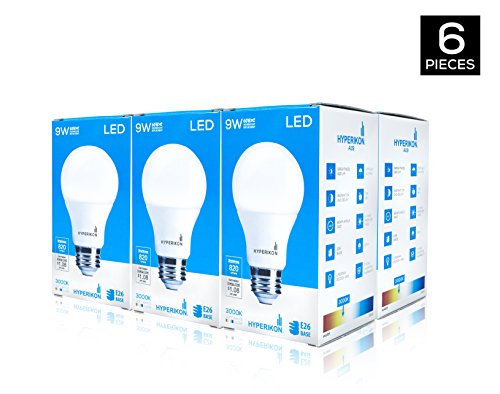 HyperSelect 9W LED Light Bulb A19 E26, Non-Dimmable, LED Bulb [60W Equivalent], 3000K (Soft White Glow), 820 Lumens, Medium Screw Base, UL-Listed (Pack of 6)