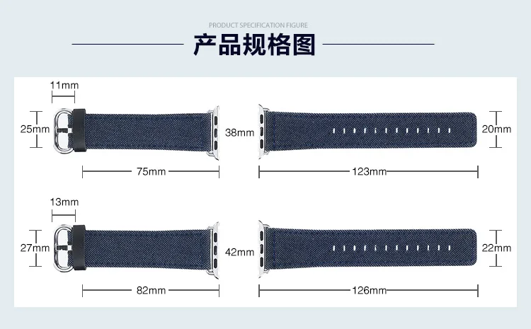| [해외] Dahase 레저 스타일 블루 데님 손목 스트랩 apple watch 시리즈 2 시계 밴드 iWatch 첫번째 42 미리메터 38 미리메터 진 팔찌 새로운 |