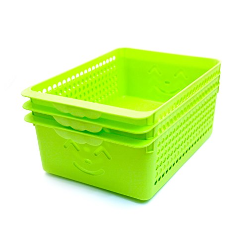 SMILE Storage Organizer Basket, for Multi Purpose, Bathroom, Health and Beauty Products, Bath Towels. (Green 24.5x34x14cm / 3set)