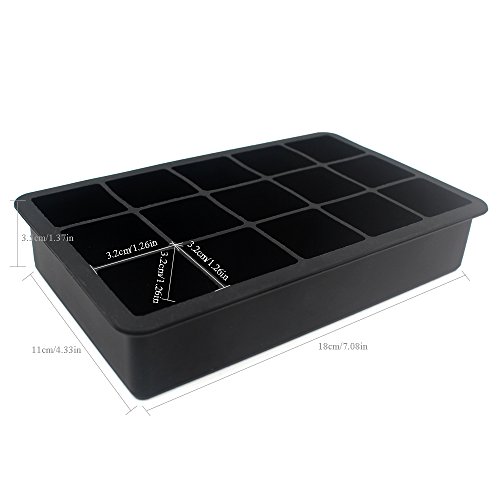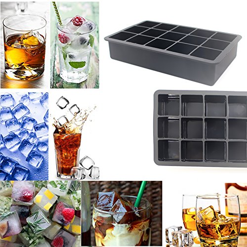 - 15 SQUARE ICE CUBES MOLD: Our square ice tray creates 15 ice cubes at 1.26in length each. Put them into cocktails, whiskeys, coffee, lemonade; use them to make popsicles; freeze fruit, food, dumplings, and so on.
