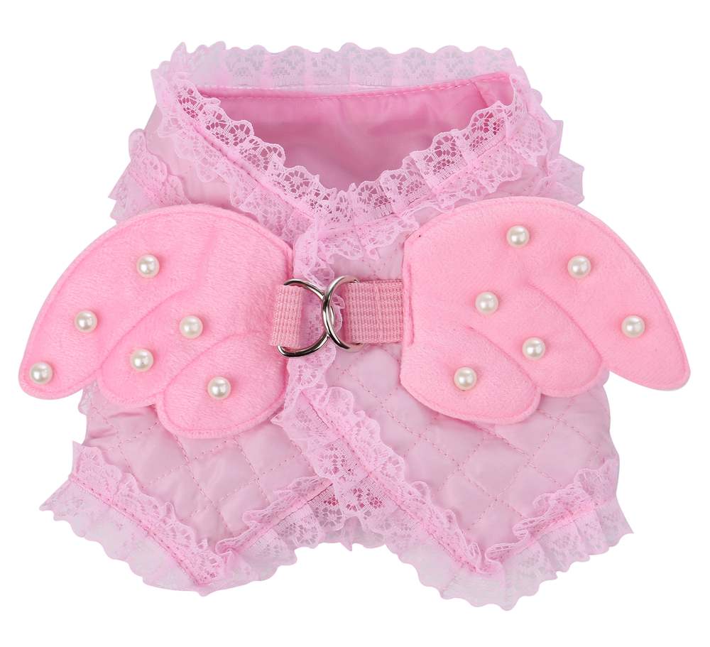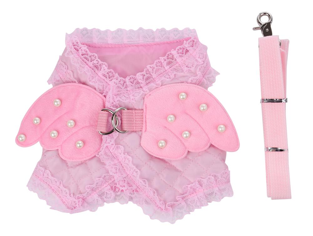 猫用 ピンクの天使 レース ハーネス リード付 胴輪 ペット お出かけ お散歩