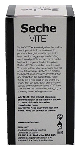 -. Binding : Misc. -. Brand : Seche -. Feature : Available in a convenient travel size for on the go use / Provides silky look and high gloss / Durable high gloss shine / Has long lasting effect / UV Inhibitors -. Label : Seche -. Manufacturer : Seche -. MPN : SEC400 -. PackageQuantity : 1 -. PartNumber : SEC400 -. ProductGroup : Beauty -. ProductTypeName : BEAUTY -. Publisher : Seche -. Studio : Seche -. Title : Dry Fast Top Coat