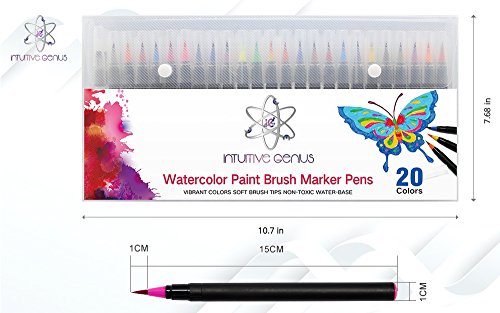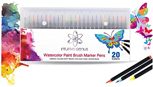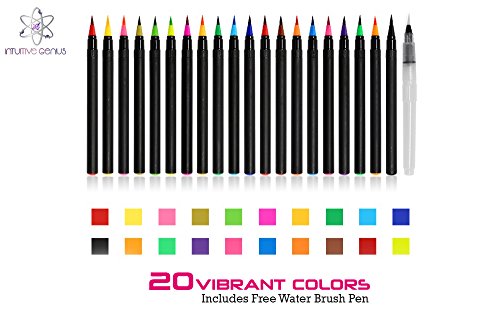 Watercolor Brush Pens - Set Of 20 Colors Soft Flexible Tip Includes 1 Water Brush Pen Nylon, Vibrant Colors - For Professional Adults & Children Coloring Books,Comic,Calligraphy,Manga, Art,Writing