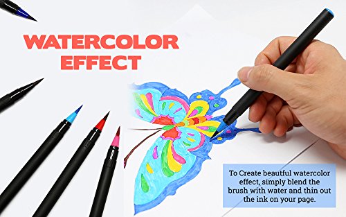 - CREATIVE EFFECTS- These bright and highly saturated colored brush pens can be used alone or with the included water brush pen to create both watercolor and gradient effects. Concentration is adjustable to meet your artistic needs.